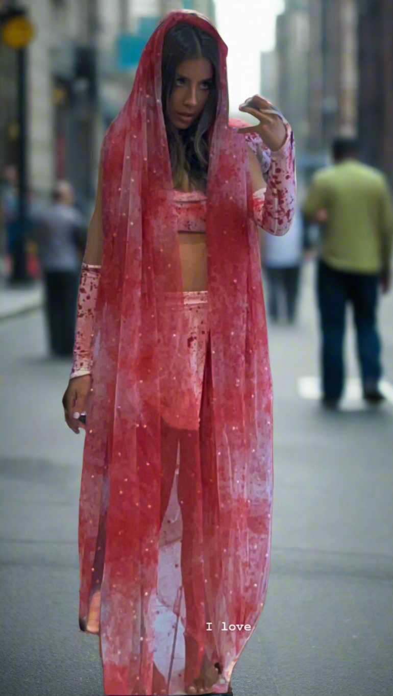 Look no further for a statement costume. Our Exclusive Apocalyptic Dead Girl is crafted with a hand painted twist to give you a truly unique and gory look. The perfect mix of edgy and ethereal, it includes a top, skirt, fingerless gloves and extra long veil- all in one size fits most. Dare to be different this year and stand out from the crowd!