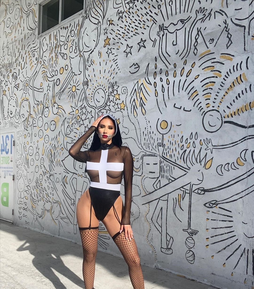 Includes: Bodysuit ,Headpiece, Garters, and stockings