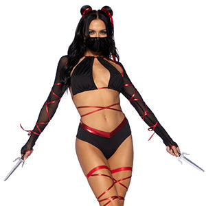 This Lethal Ninja includes top, shorts, leg wraps, face mask, and hair ties.