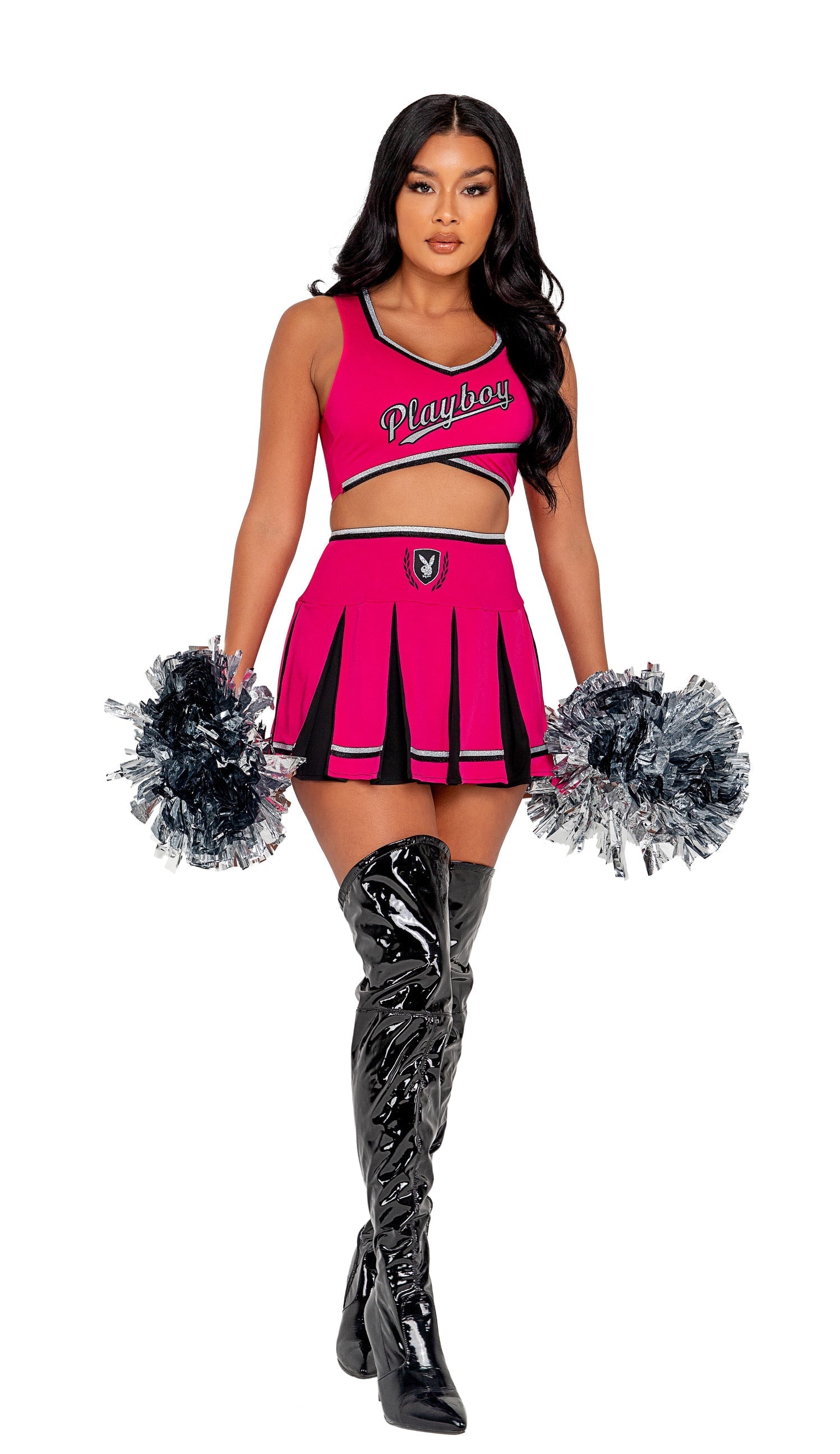 Includes Top with Playboy Print, Skirt, & Pom Poms