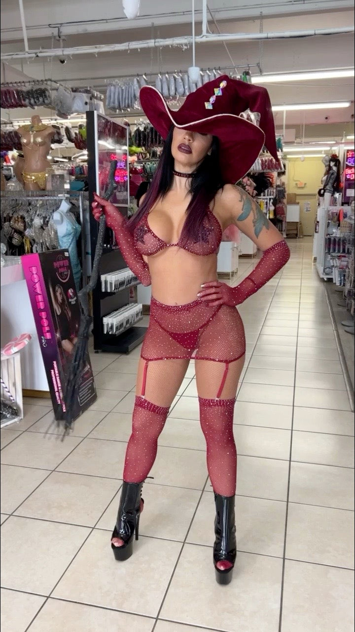 This 8 PC sexy lingerie look features a bikini top, g-string, garter skirt, gloves, and matching stockings. A jaw-dropping outfit that’s perfect for the club or a sexy night in.